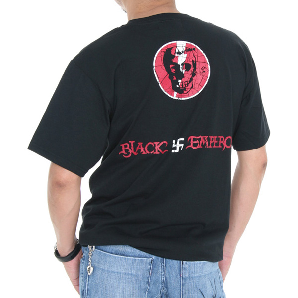 フロントは、ロゴがプリントされた胸ポケット付。バックはスカルのプリントです。