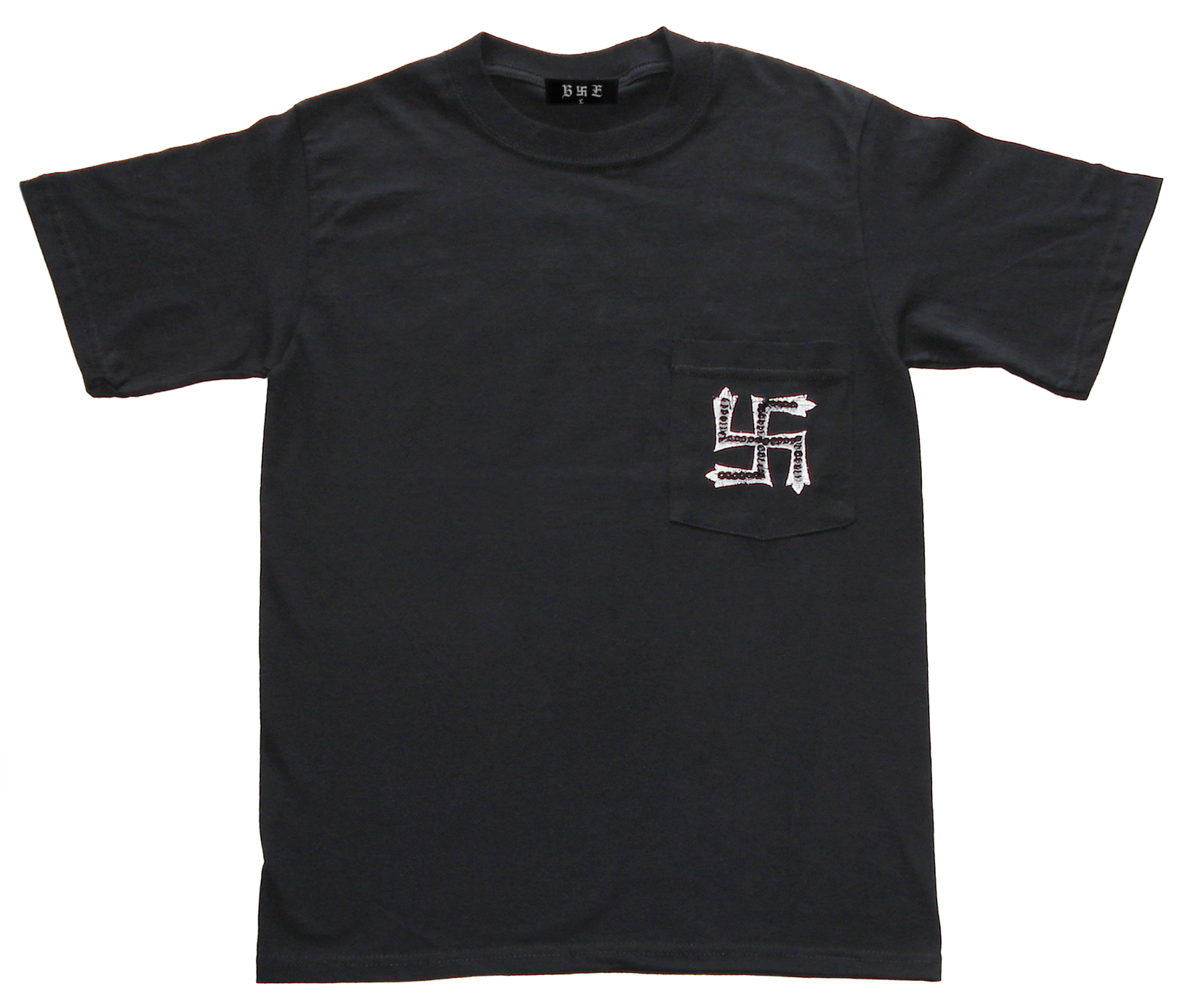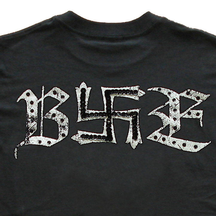 フロントは、卍ロゴに黒のスパンコール付胸ポケットでインパクト大!バックは「B卍E」ロゴのプリントに黒のスパンコールとビーズ付。